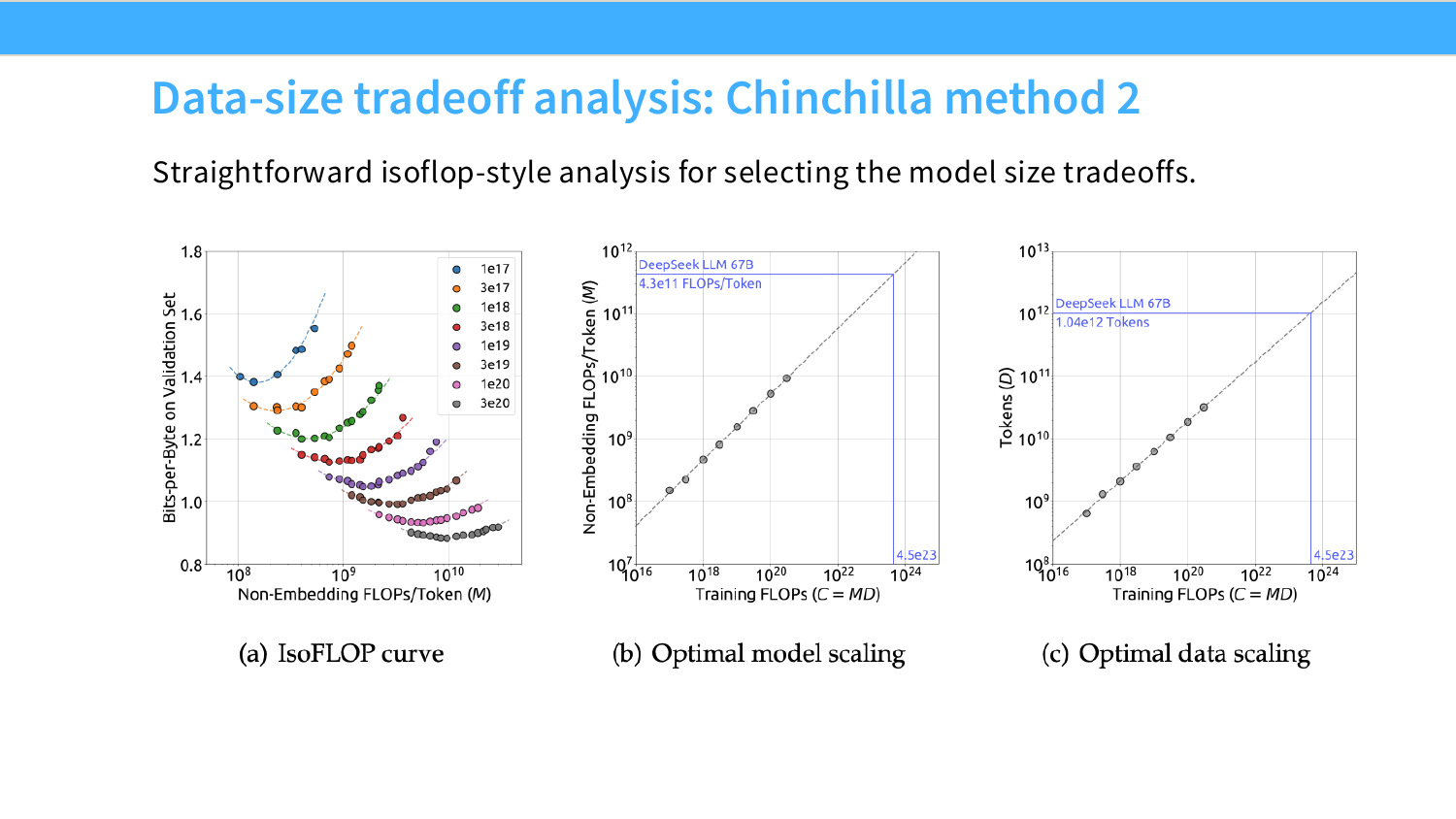 数据和架构都选好之后,还需要确定:给定总算力预算,应该训一个大模型用少量 token,还是一个小模型用大量 token?
